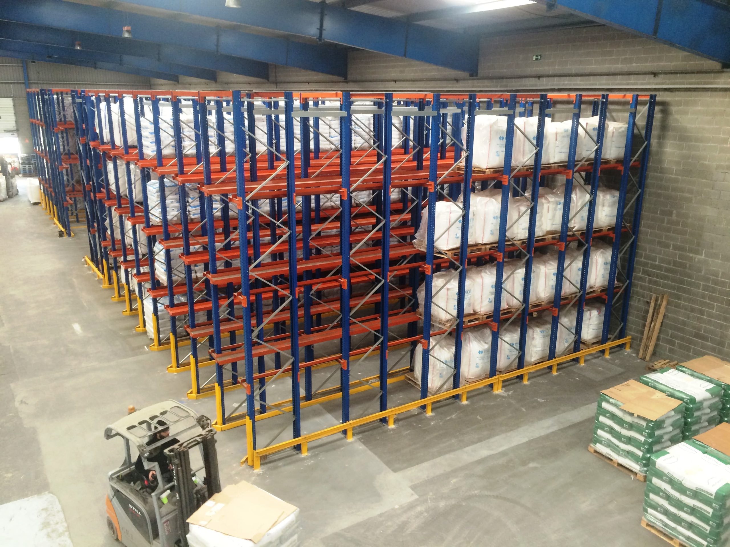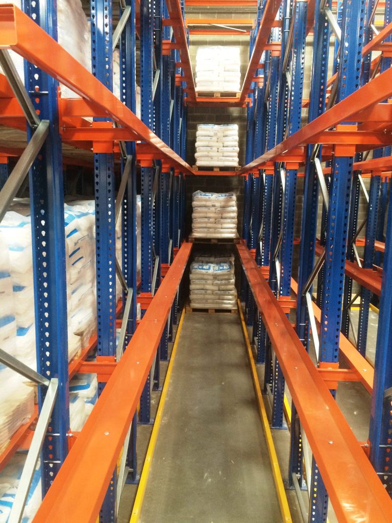 É uma solução indicada para operações com necessidade de elevada densidade de armazenagem e onde a gestão do stock pode ser organizada por canais, permitindo reduzir significativamente a área ocupada por corredores de circulação.